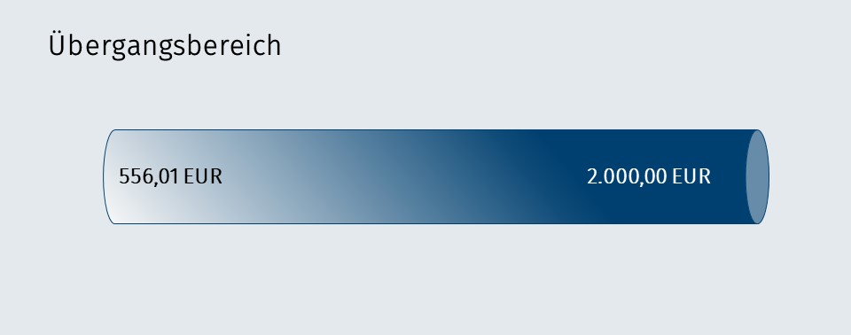 Der Übergangsbereich (ehemals Gleitzone) umfasst – aufgrund der Anhebung des gesetzlichen Mindestlohns und der damit einhergehenden Anhebung der Geringfügigkeitsgrenze – vom 1. Januar 2025 an Beschäftigungen mit einem regelmäßigen monatlichen Arbeitsentgelt von 556,01 bis 2.000,00 EUR: