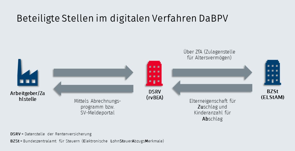Das Bundeszentralamt für Steuern (BZSt), der Spitzenverband Bund der Pflegekassen und die Deutsche Rentenversicherung Bund haben die Gemeinsamen Grundsätze vom 29. August 2024 aufgestellt. Danach gilt (Ziffer 1.2): „Die Teilnahme am DaBPV ist für alle beitragsabführenden Stellen, die zur Berücksichtigung von Zu- und Abschlägen in der sozialen Pflegeversicherung verpflichtet sind, obligatorisch.“ Die Gemeinsamen Grundsätze (sowie nach deren Finalisierung später auch die von der ZfA aufzustellende Verfahrensbeschreibung) können wertvolle Unterstützung beim Start in das neue Verfahren leisten.